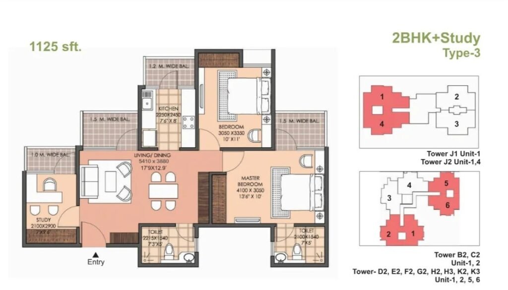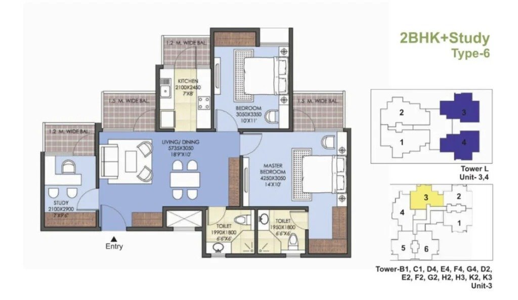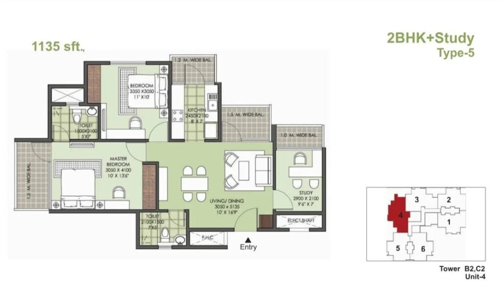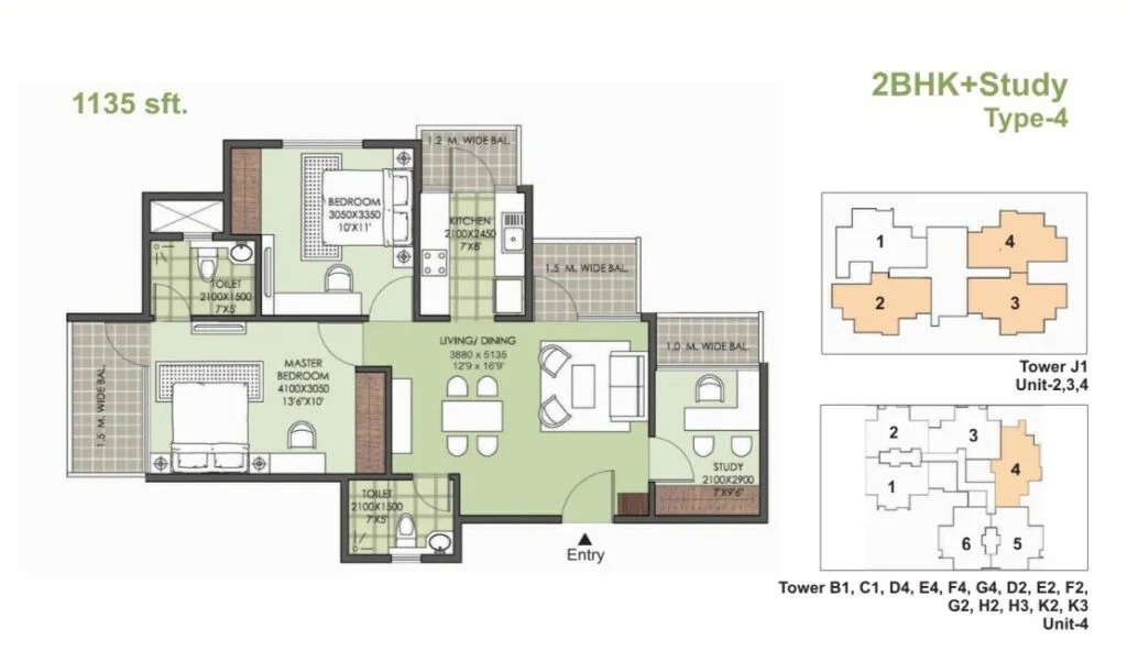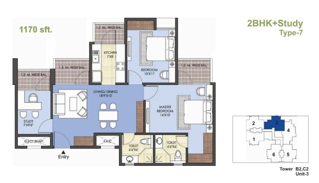 | 2BHK + 2T + STUDY | 1170 SQ.FT. | |
