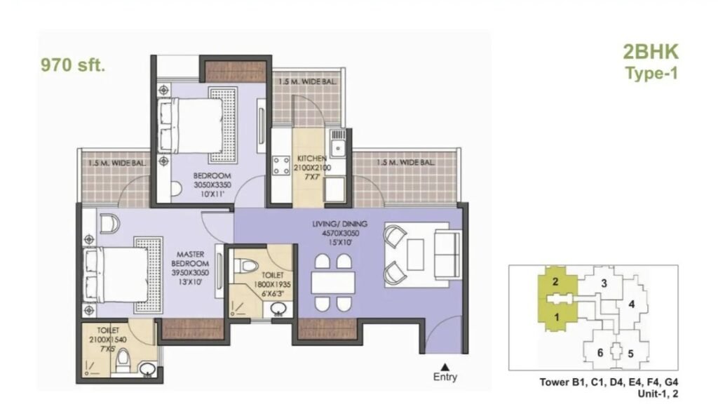 | 2BHK + 2T | 970 SQ.FT. | 79 Lacs* |